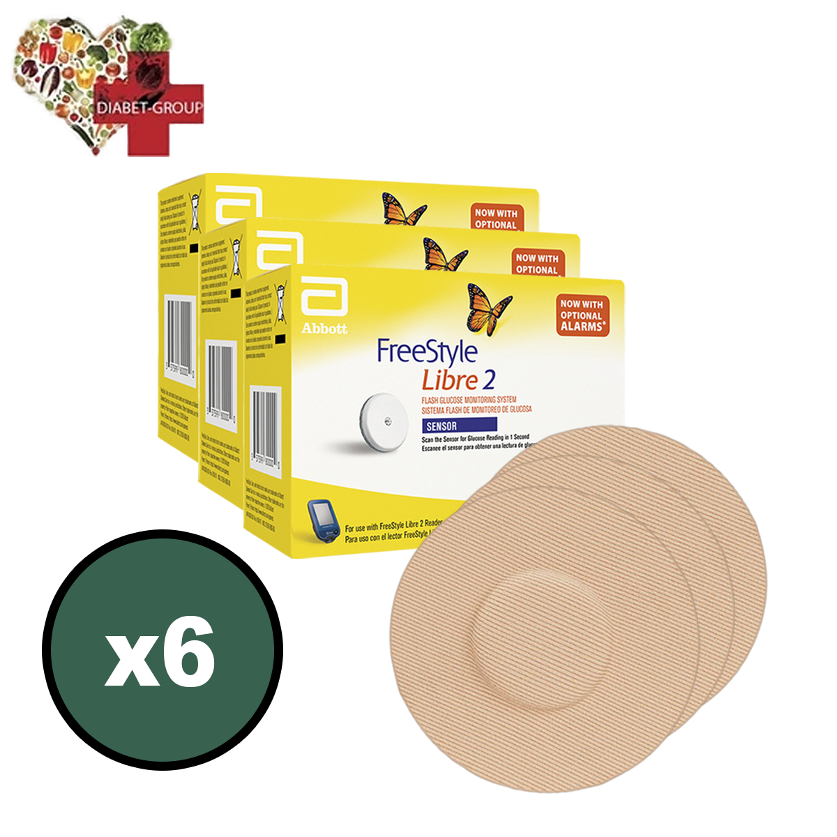 Этот комплект включает в себя 6 сенсоров Freestyle Libre 2 и шесть тейпов для удобства использования.