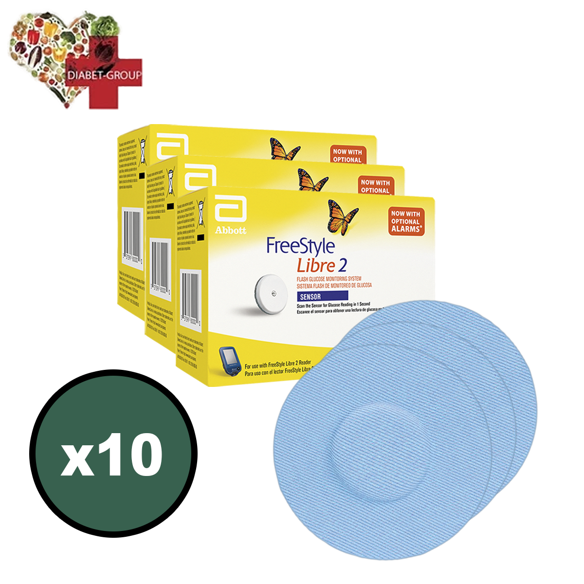 Цей комплект містить 10 сенсорів Freestyle Libre 2 і десять кольорових тейпів для зручності використання.