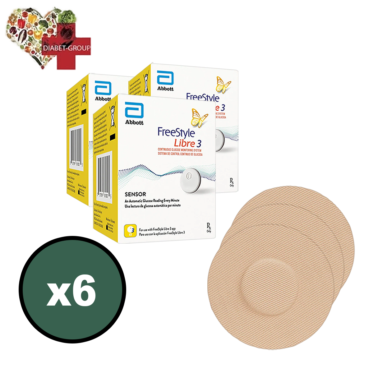 Цей комплект містить 6 сенсорів Freestyle Libre 3 і шість тейпів для зручності використання.